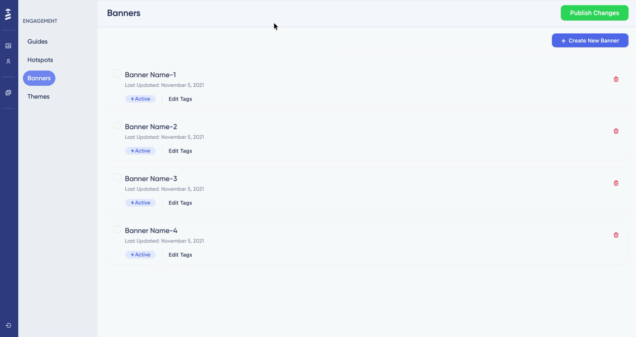 The feature introduced a new in-product communication capability that integrates into the page flow rather than overlaying it. Banners could now be placed precisely, styled consistently through the theme system, and tracked within the existing reporting infrastructure.